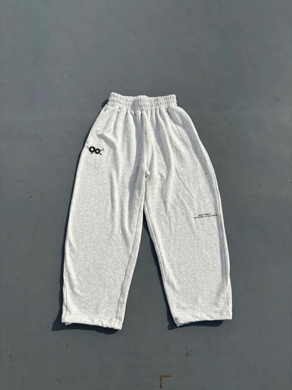 フロント左側にドット仕様の90を刺繍し、バックにもドット仕様の9090 OG Logoが大きくプリントされているスウェットパンツ。