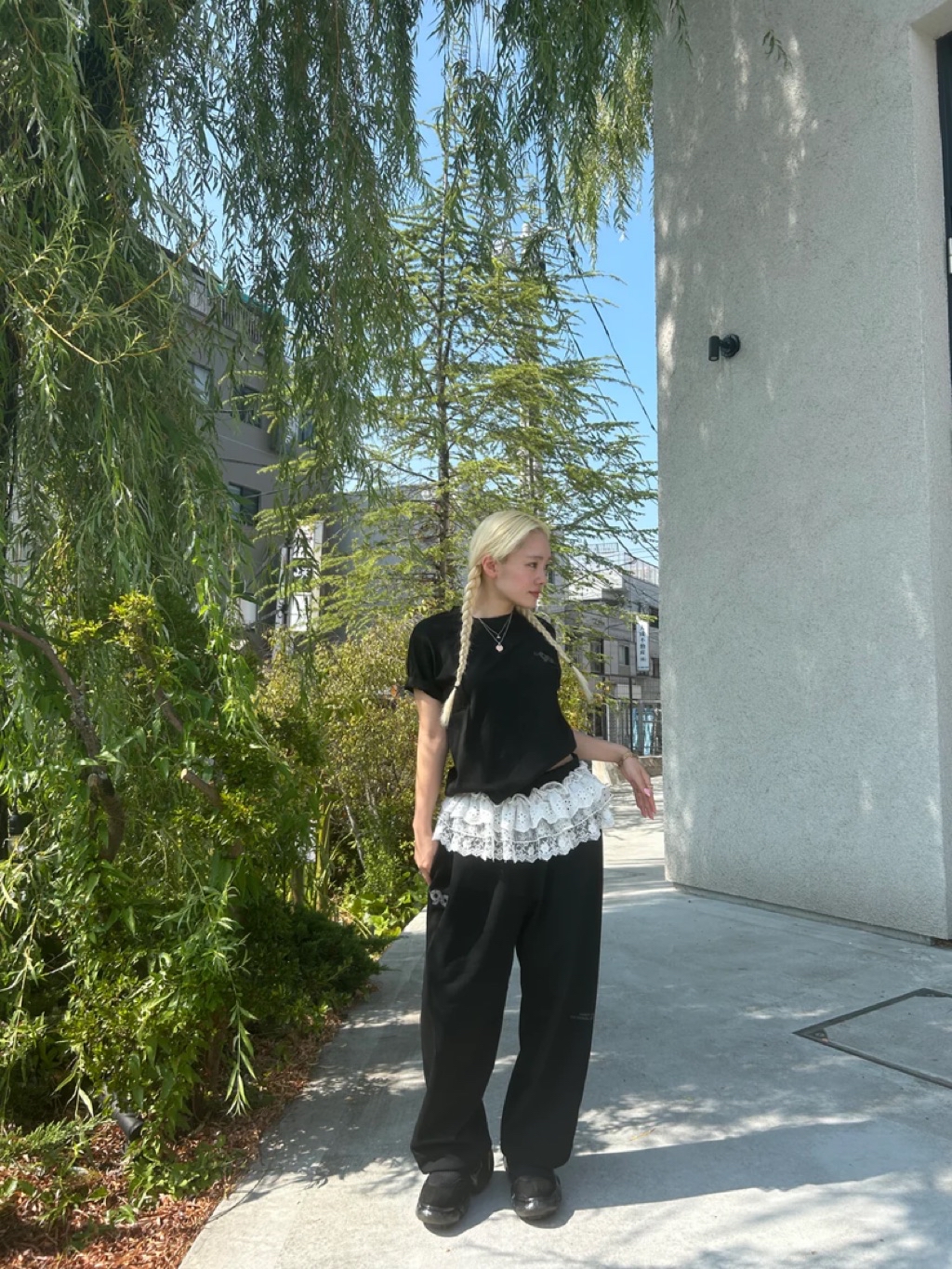 ※90 Logo Dot Tee、3 Layered Lace Skirtとセットアップとして着用可能。