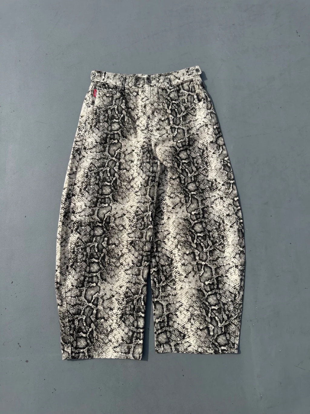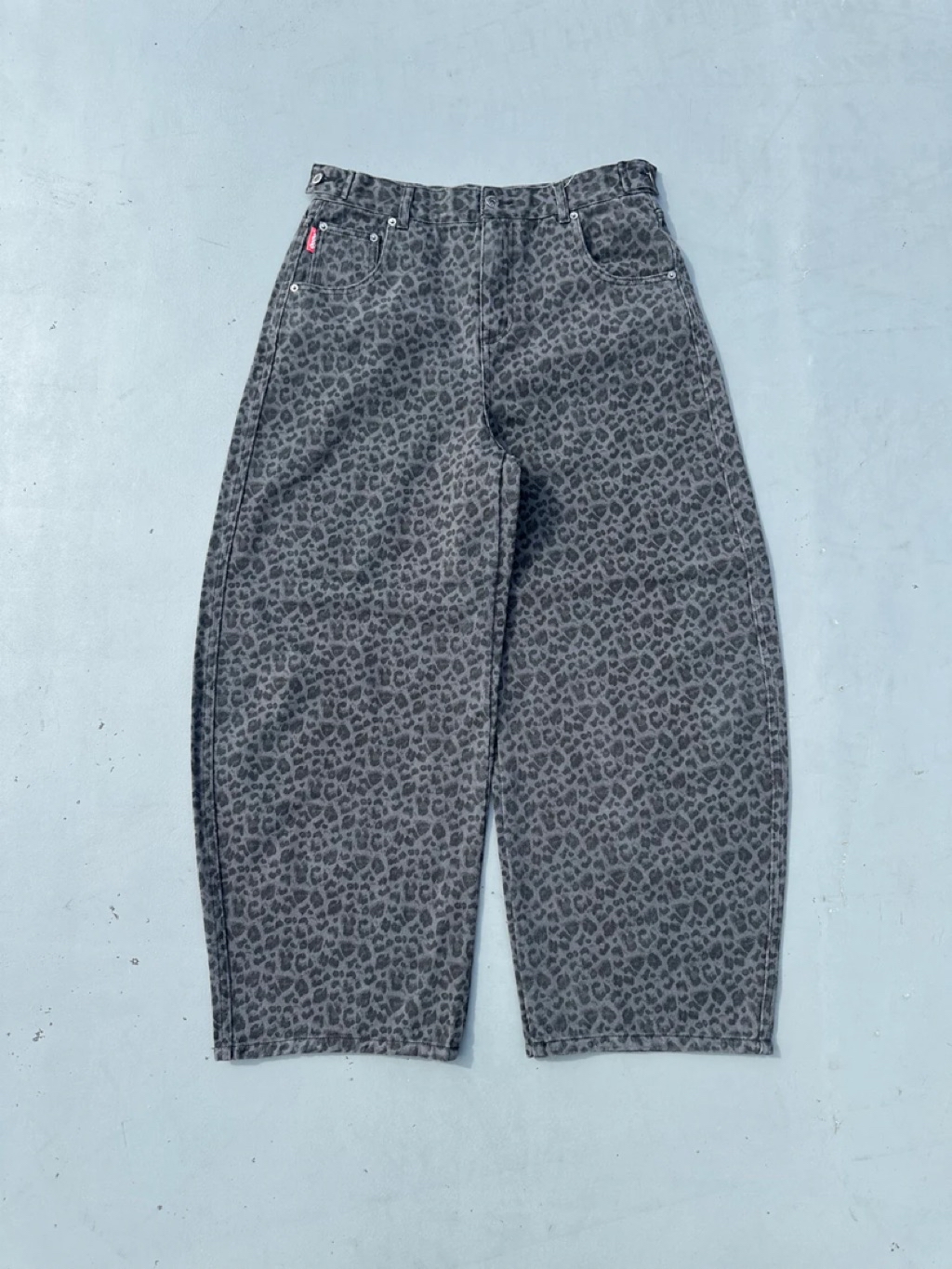 膝にかけて大きく膨らむバルーンっぽいシルエットに、裾にかけてテイパードがきいたバギーパンツ。通常のバギーパンツは裾まで太りため裾を引きずってしまうが、このパンツはバギーのようなシルエットをキープしつつも、裾は引きずらずに靴に溜まるような特徴的なパターンに仕上げている。